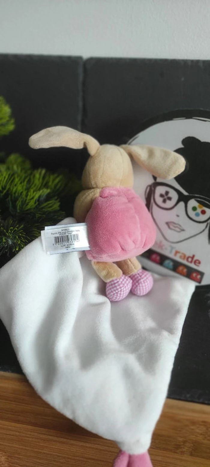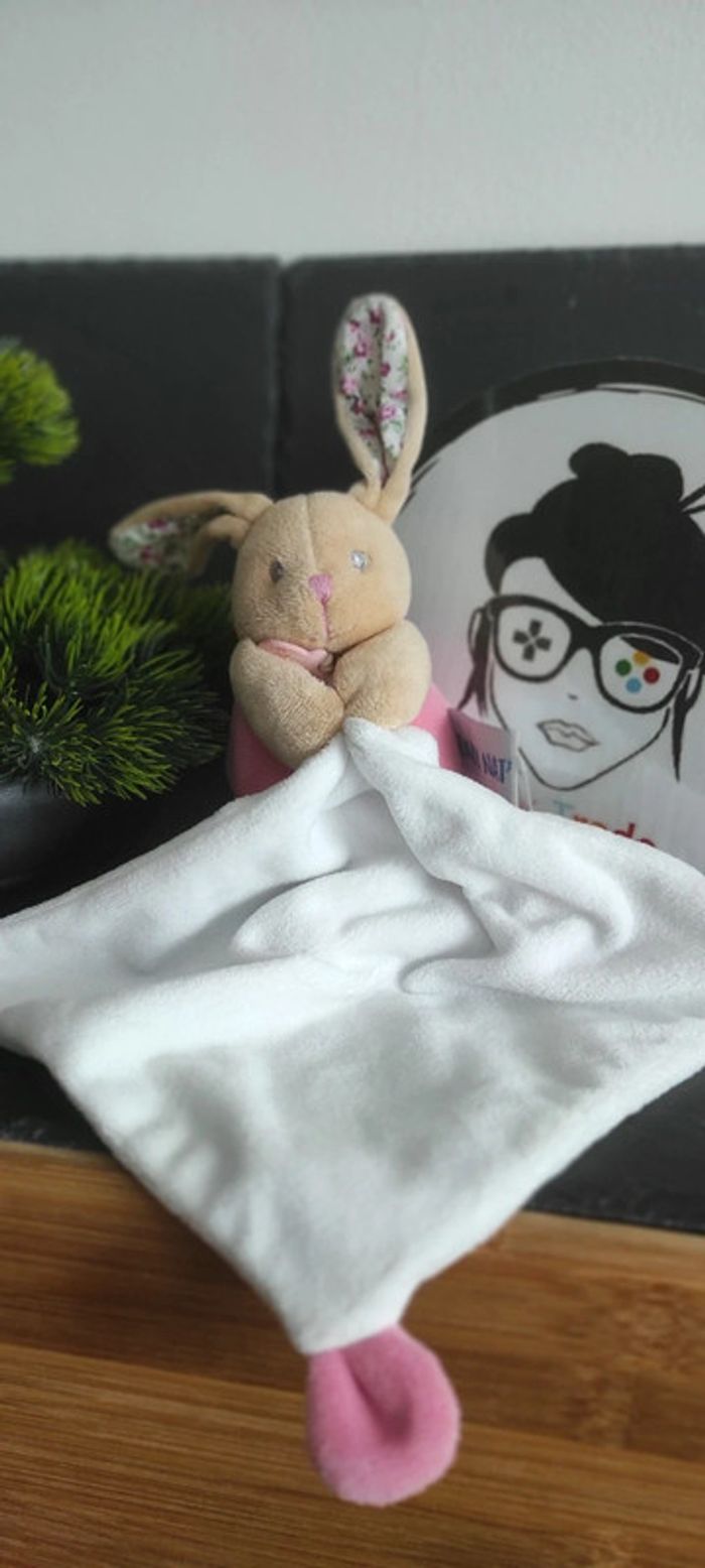 doudou lapin mouchoir baby nat bn0611 poupi rose blanc fleurs Marron Beige - photo numéro 1
