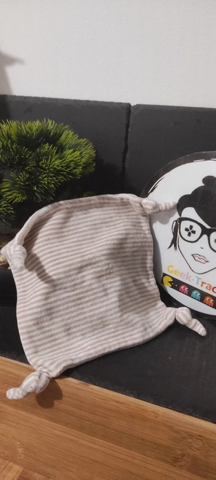 doudou mouchoir plat mouton gris blanc beige rayé rayures kiabi noeuds Nicotoy - photo numéro 1