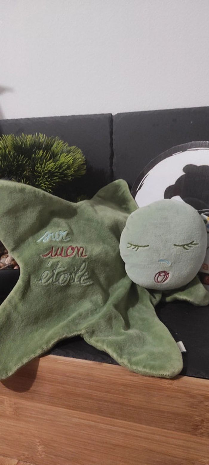 Doudou plat vert Sur mon étoile DPAM du pareil au même bouche Yeux Cils Nez - photo numéro 1