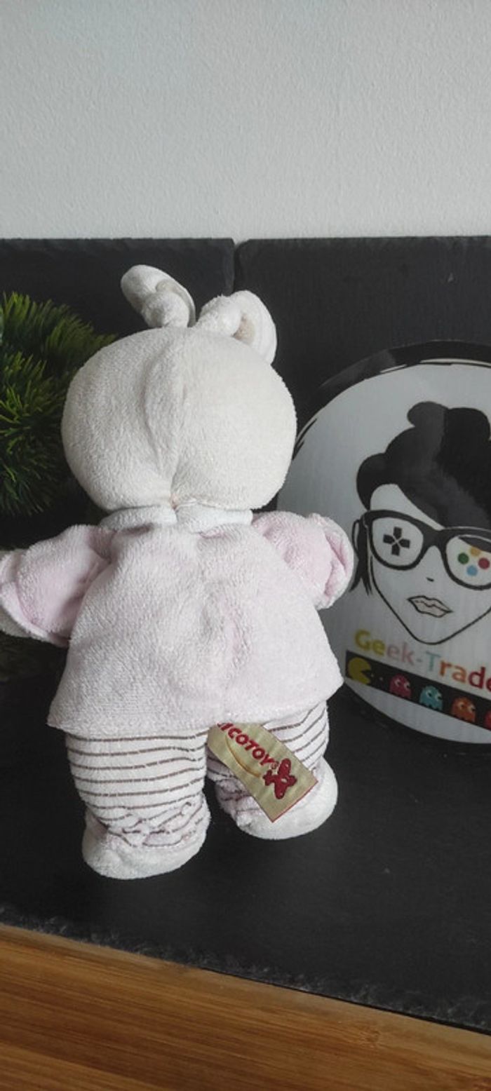doudou lapin nicotoy Simba rose marron abc a b c rayure rayé noeud coeur Peluche - photo numéro 2
