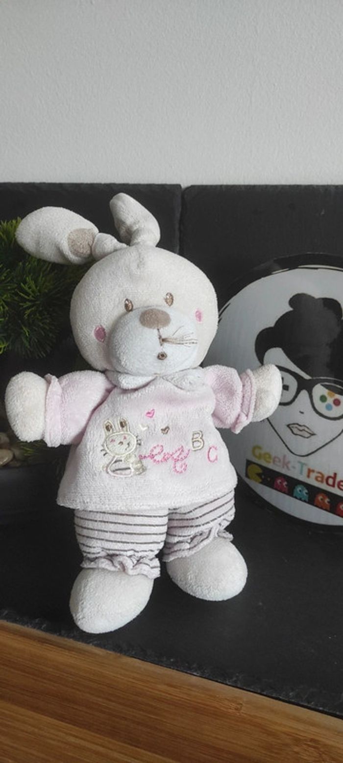 doudou lapin nicotoy Simba rose marron abc a b c rayure rayé noeud coeur Peluche