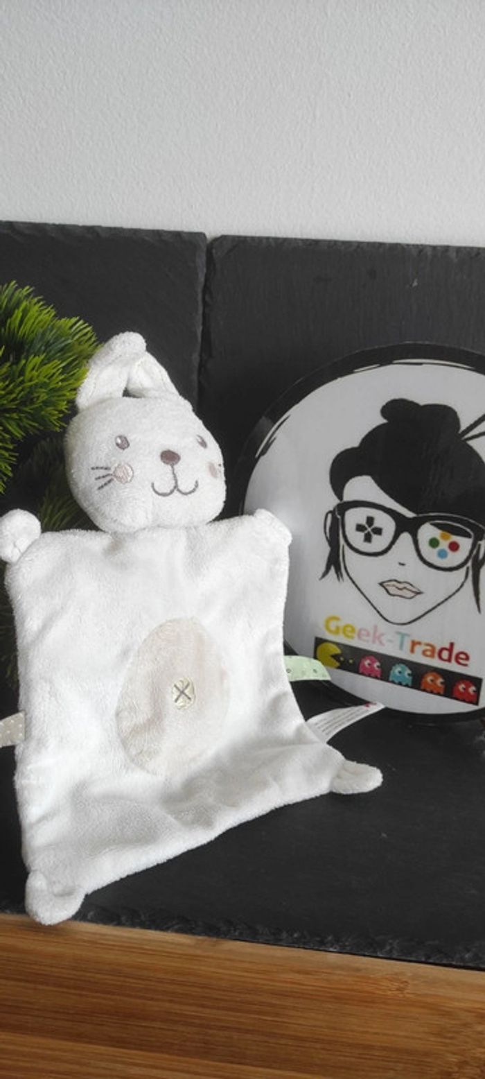 Doudou plat Lapin blanc beige croix rond ventre Nicotoy Vert Carré Moustaches DD00787 Bon etat Afin de ne pas abîmer les doudous et de laisser le choix dans l'utilisation de la lessive les peluches ne sont pas lavées avant envoi Description complément : Petit nettoyage à prévoir Vous achetez ce que vous voyez les photos font entièrement partie de la description #geektradenicotoy Transport : Les frais de transport comprennent les frais du transporteur ainsi que l'emballage pour protéger au mieux votre achat. Chaque achat est envoyé en format colis avec numéro de suivi Le poids du colis est de 500g finit (je ne peux pas faire moins) il peut donc y avoir plusieurs objets dans le carton si vous le souhaitez (contactez moi afinde grouper les frais de port) Référencement : #geektradedoudou #peluche #plush  #doudou #enfant #beDoudou Knuffel Comforter Dumbo Disney Éléph