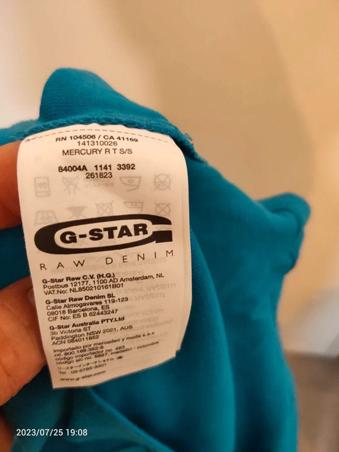 T-SHIRT G-STAR RAW MANCHE COURTE Bleu turquoise Taille XL Taille prêt du corps donc petit correspond peut-être plus à un L Porté 1 fois État proche du neuf