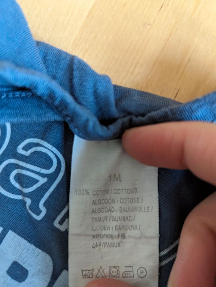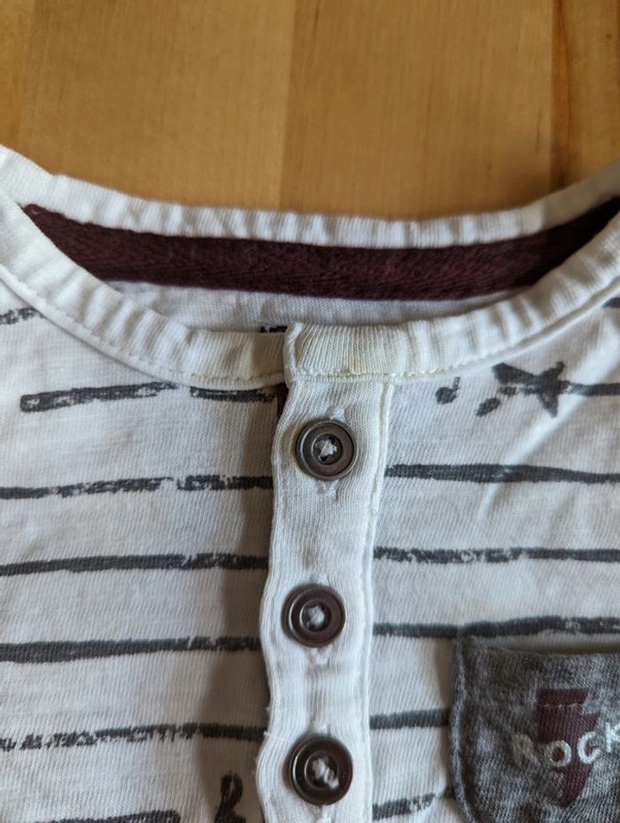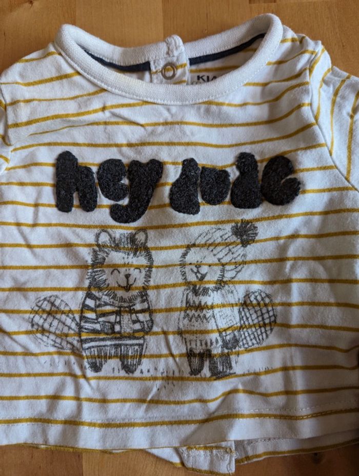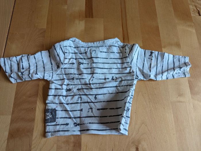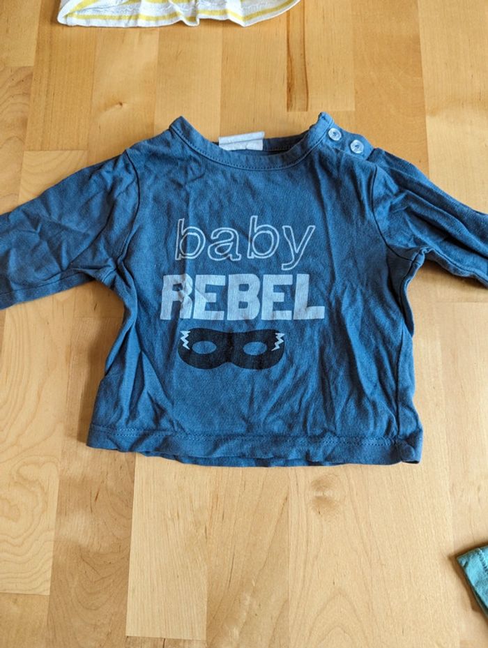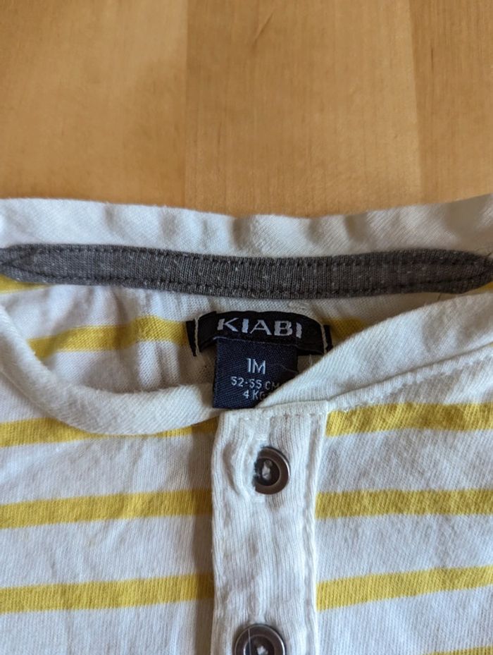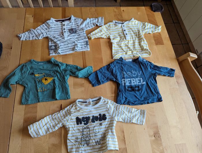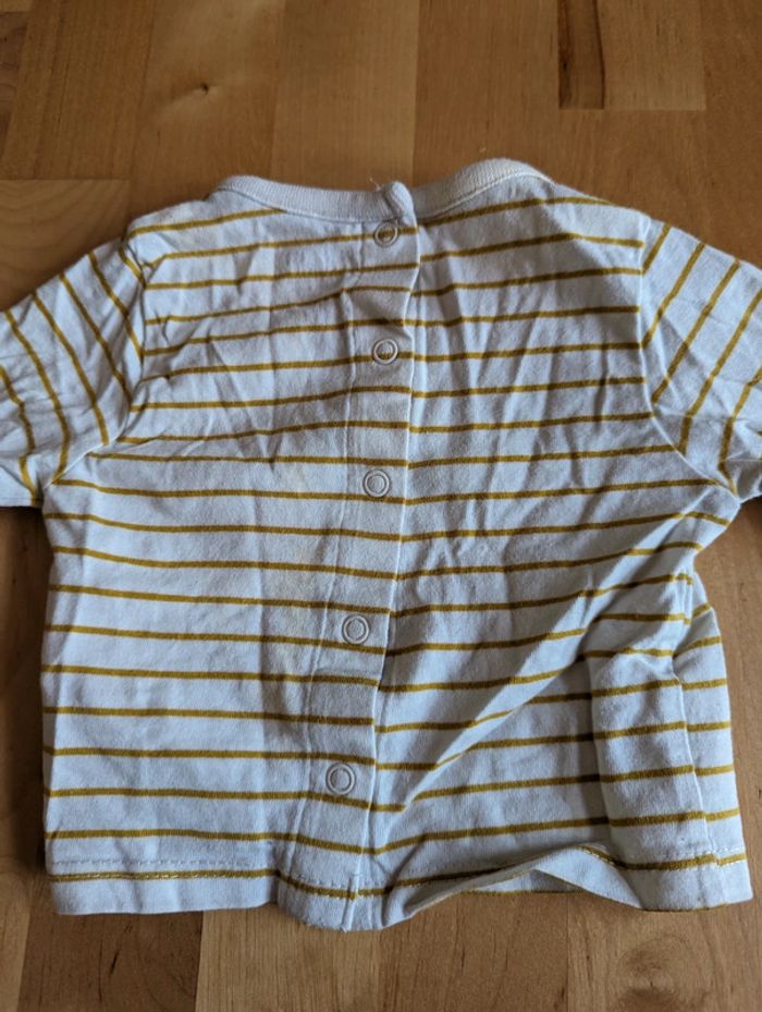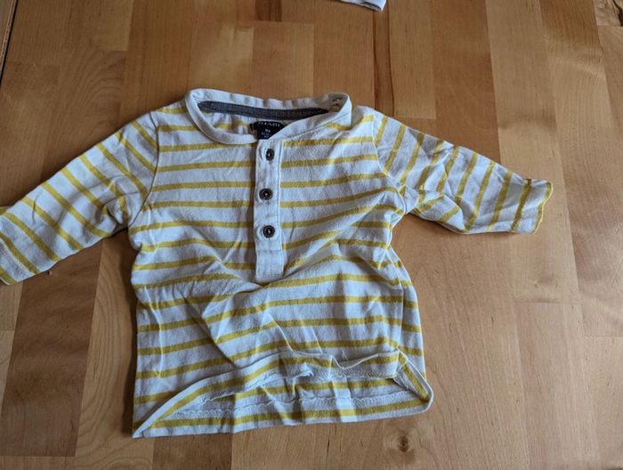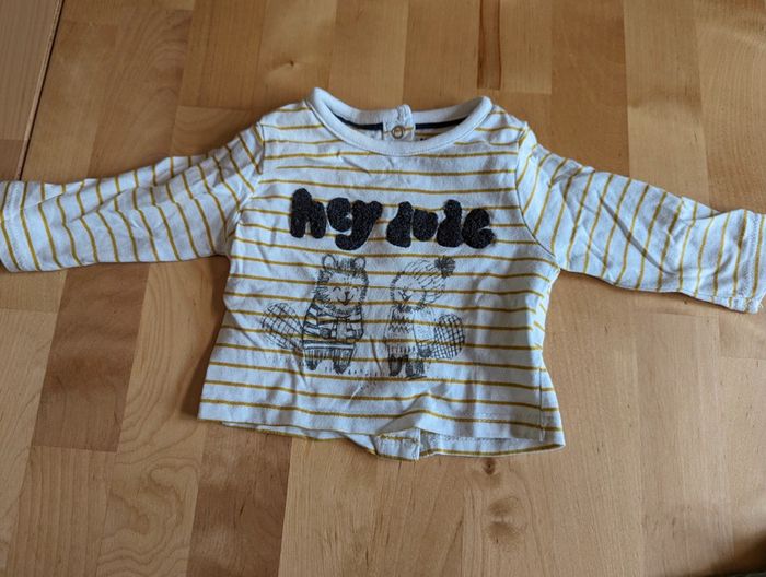 T shirt manches longues lot de 5 taille 1 mois Un des t shirt (le rayé blanc) a une tâche jaune (cf photo).