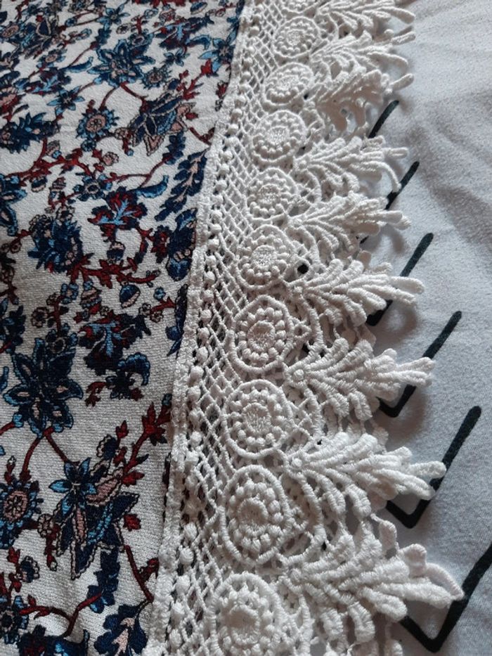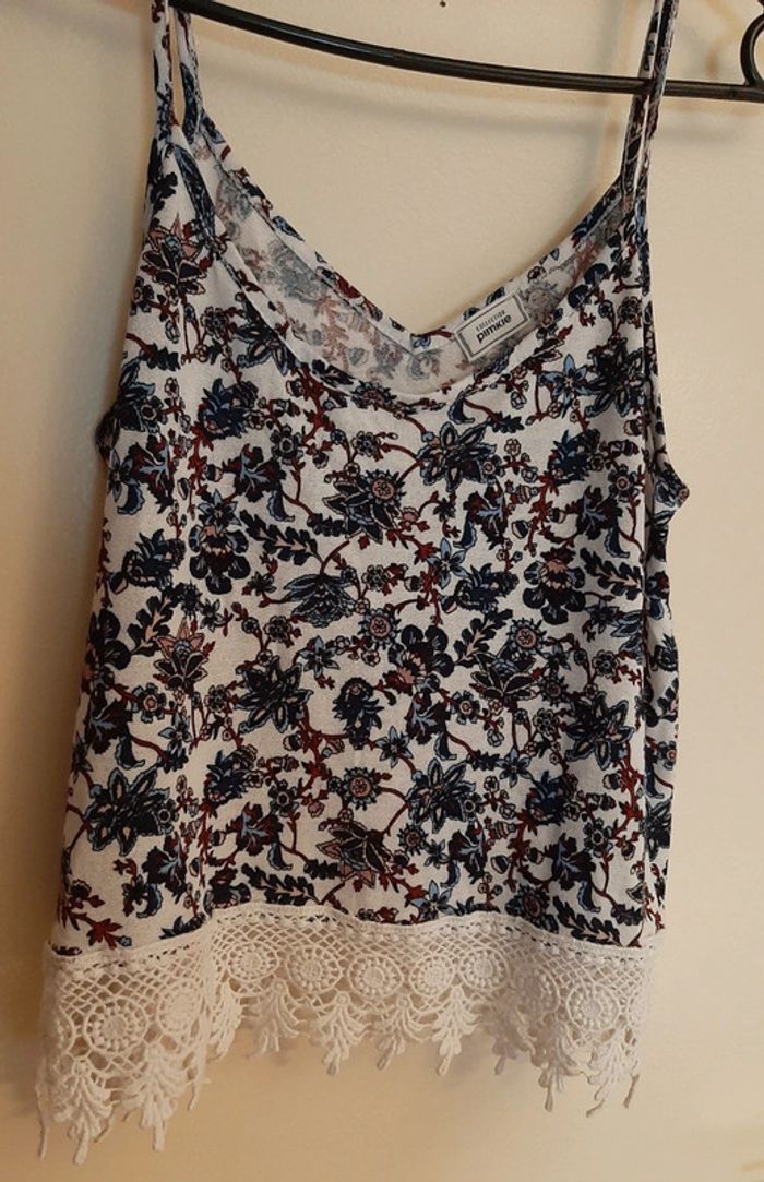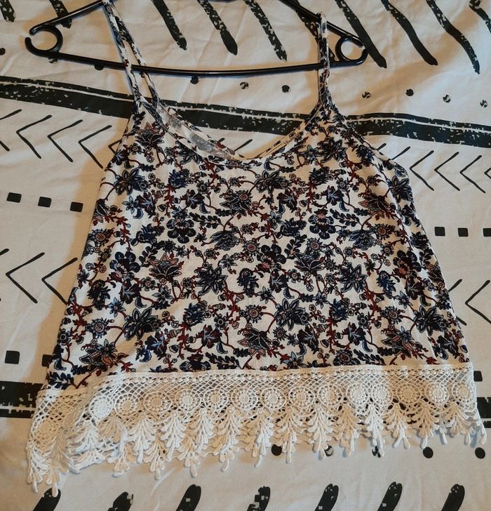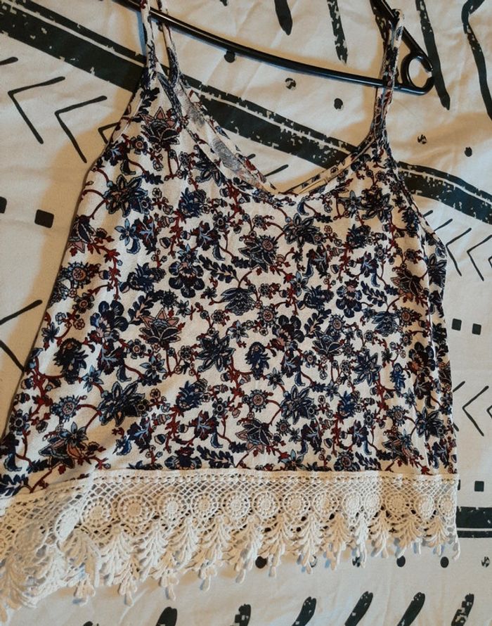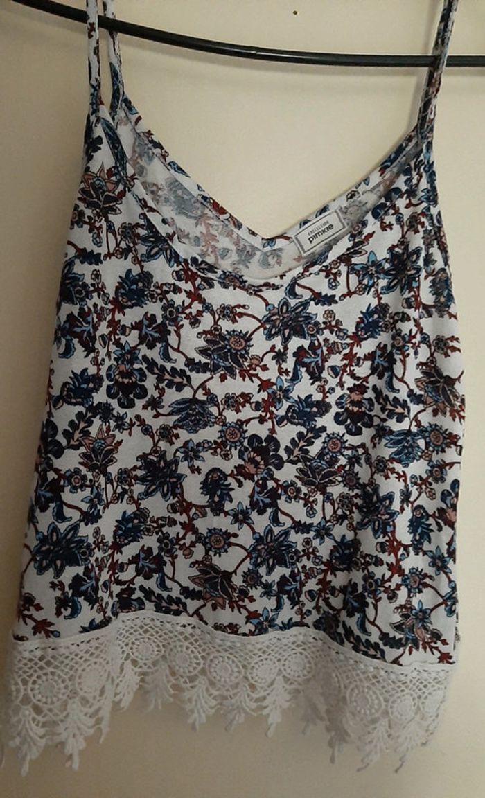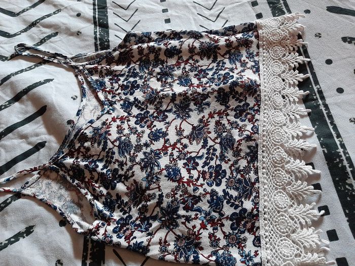 Magnifique débardeur à bretelles, avec des motifs florales. Et le bas du vêtement en dentelles crochet. Marque pimkie. Décolleté. Matière fluide et agréable à porter. Vêtement en excellent état. N'hésitez pas à aller faire un tour dans mon dressing de nombreux autres articles à vendre à des tout petits prix et prix dégressif sur les lots 🙂🌸je reste disponible pour toutes questions.