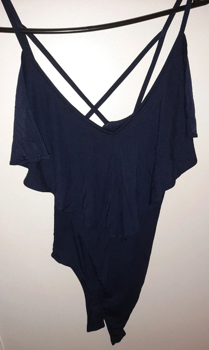 Body bleu marine, en très bon état. Volant sur le devant au niveau du décolleté, bretelles qui se croisent joliment dans le dos. Boutons pressions à l'entre jambes. J'ai le même body d'une autre couleur à vendre également dans mon dressing. N'hésitez pas à aller y faire un tour pour bénéficier de tarifs dégressifs sur les lots 🙂🌸, je reste disponible pour toutes questions.