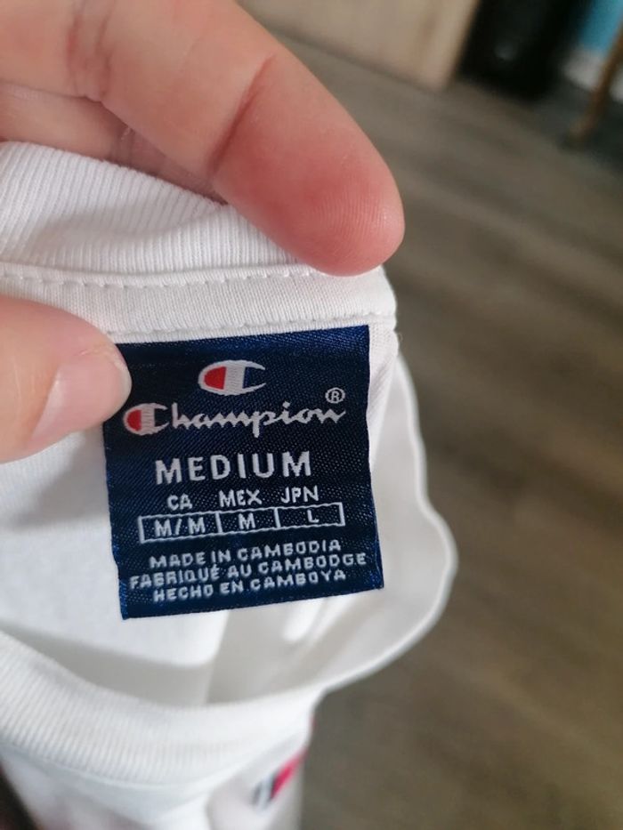 Bonjour, je vends ce tee shirt à manches courtes blanc de la marque Champion taille M en très bon état. Lavé maison non fumeur.
