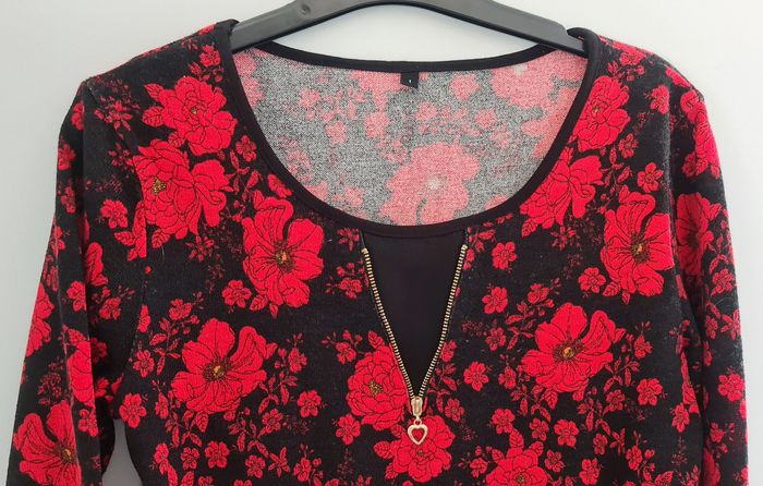 A la vente, en très bon état, cet élégant petit pull noir (style blouse), manches 3/4 et imprimés à fleurs rouge. En semaine, cet article peut vous être déposé à l'Espace Européen de l'entreprise, Schiltigheim.