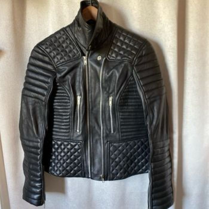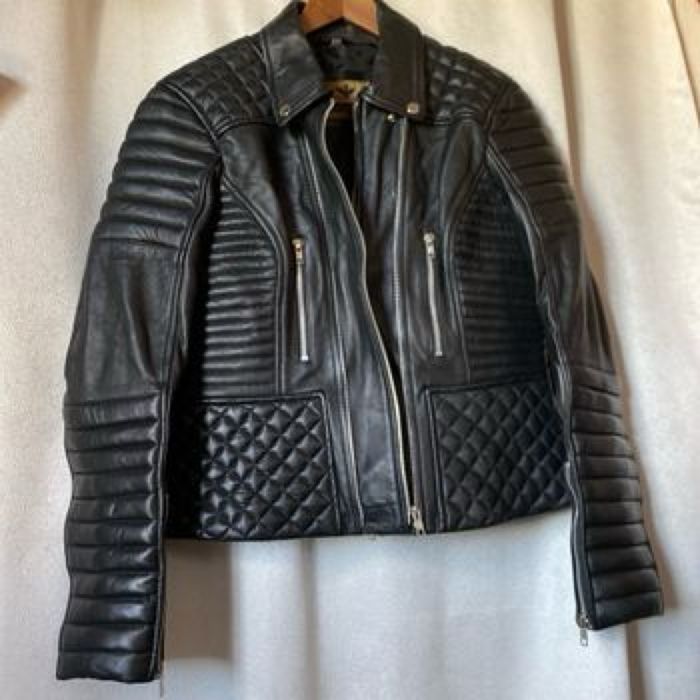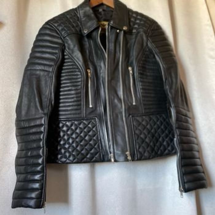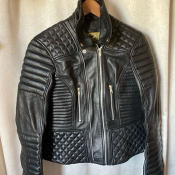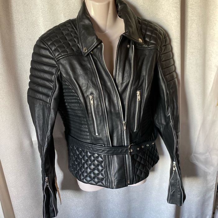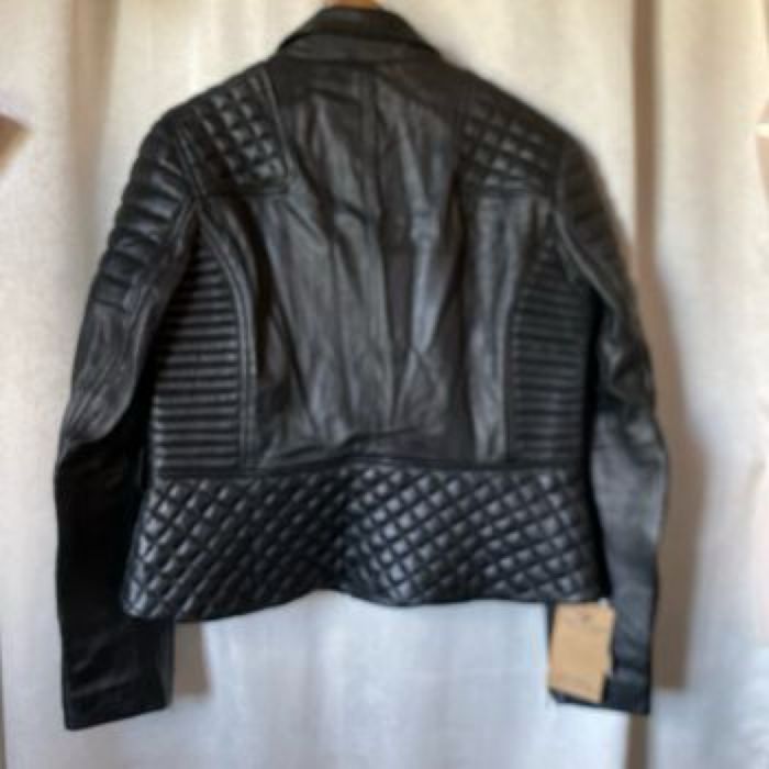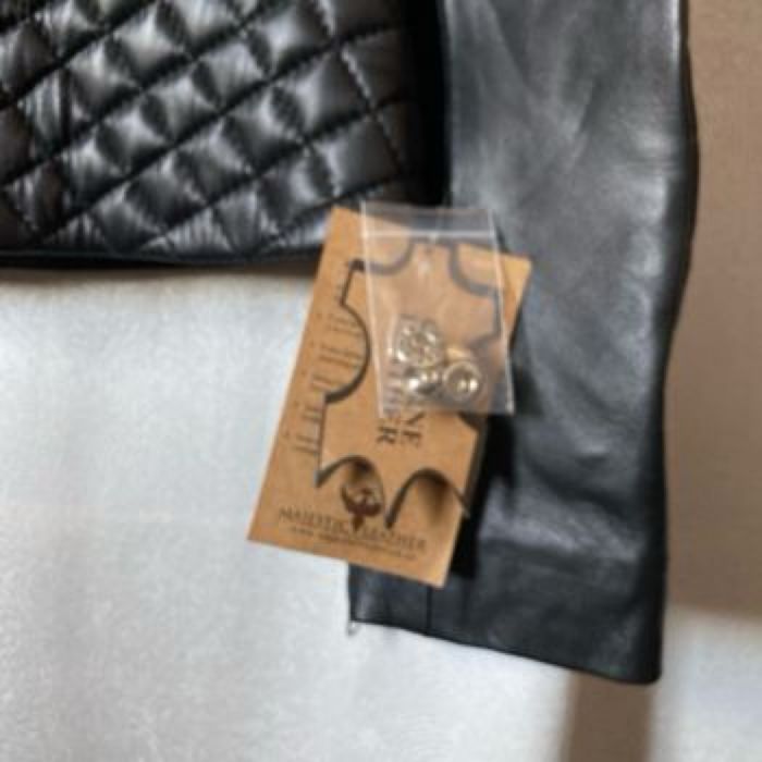 Blouson neuf de motard Modèle mixte en cuir noir , 2 fermetures YKK, droite ou gauche Étiquette 2XL , il est parfait pour une taille 42 /44 femme Je ne sais pas si c’est la ceinture d’origine mais elle va très bien et je n’en ai pas d’autre Majestic Leather Carrure 43,5 cm Aisselle à aisselle 56 cm Longueur dessous de manche 49 cm Largeur à plat à la taille (ceinture) 47 cm Largeur à plat tout en bas 54 cm Longueur 58,5 cm