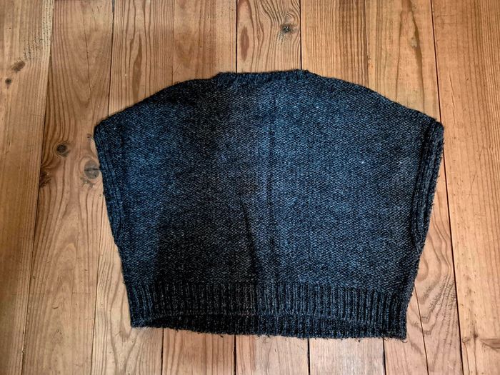 Joli poncho de laine de la marque zara. En taille 86 cm. Taille large. En très bon état. De couleur gris chiné.