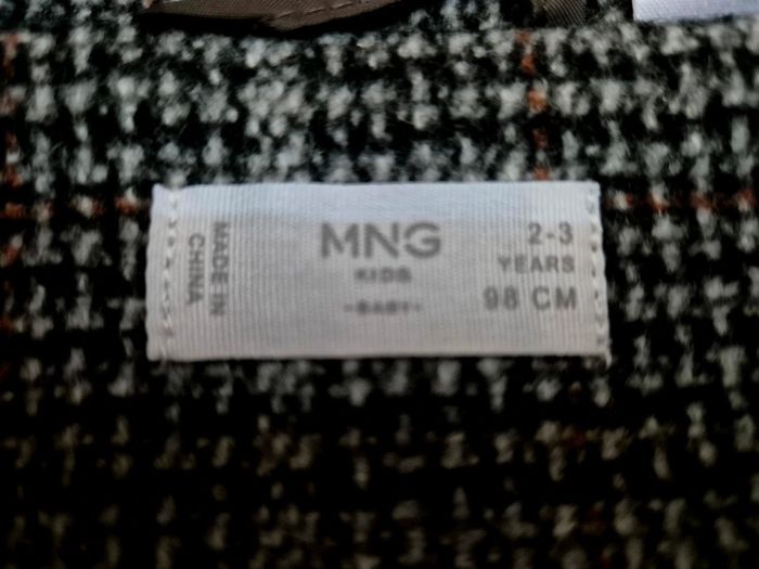Superbe manteau d hiver pour bébé fille de la marque Mango. En laine, gris chiné. En parfait état. Taille 98 cm. Doublure intérieure.