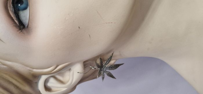 Boucles d'oreille feuilles Excellent état (NB : je n'ai pas fermé l'attache sur le mannequin pour ne pas déformer la tige mais les attaches fonctionnent parfaitement. Voir autres photos)