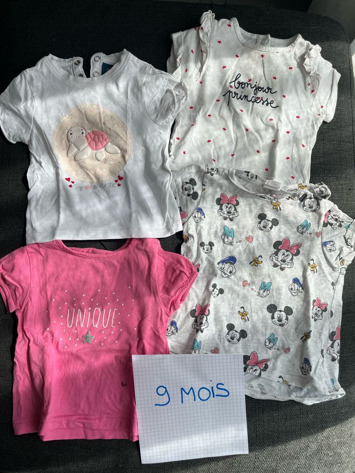 Lot tee shirt fille taille 9 mois - photo numéro 1