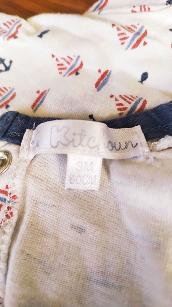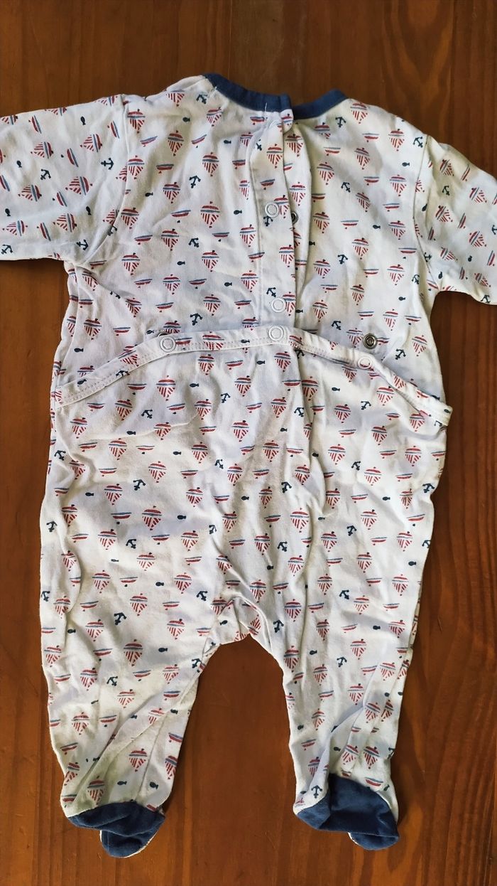 Pijama léger Manche longue Blanc et bleu marine avec des motifs de bateau Marque Kitchoun Taille 3 mois / 60cm
