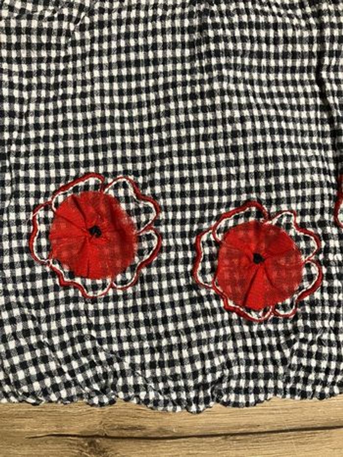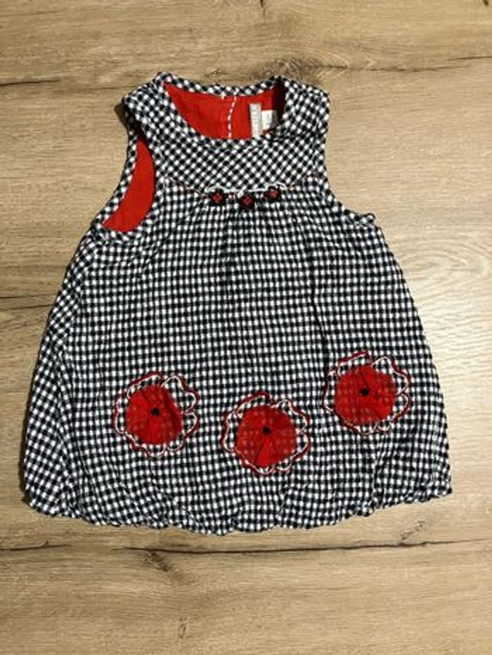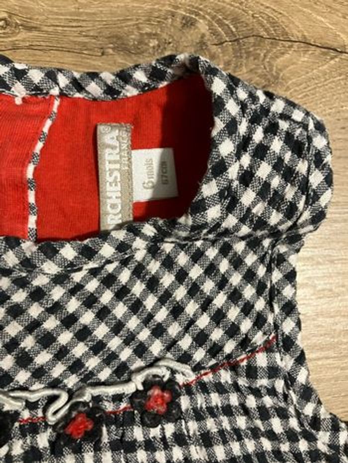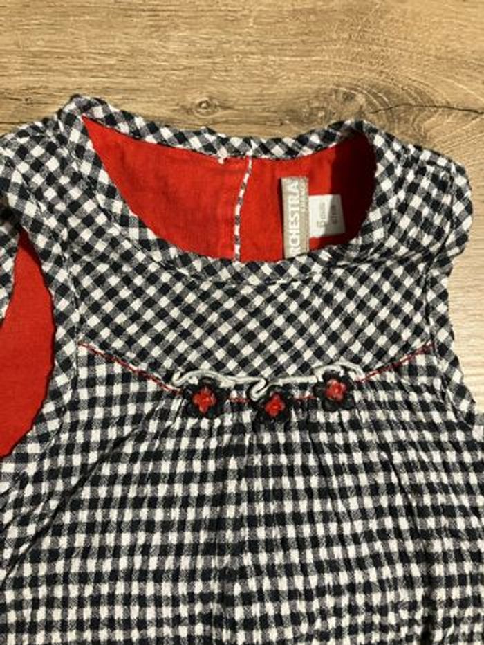 Lot de 2 robes 1 à carreaux avec fleurs rouge en tulle Orchestra et 1 en velours Kitiwatt Taille 6 mois Bon état