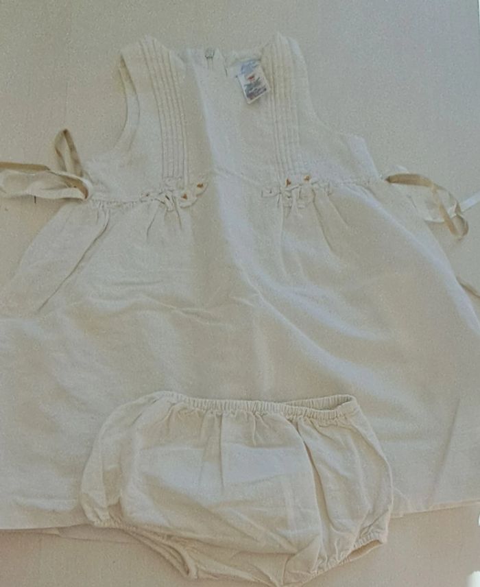 Jolie robe Jacadi avec bloomer. Le bloomer assorti cache joliment la couche, avec cuisses et taille élastiquées. Marque : Jacadi Taille : 24 mois Idéal pour un mariage, une cérémonie. #fampacrlt_vêtements_fille_24mois