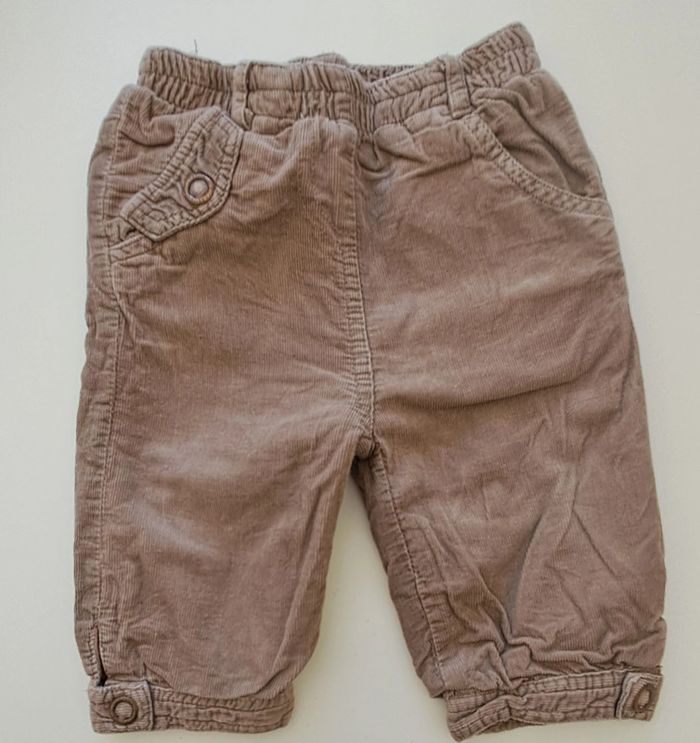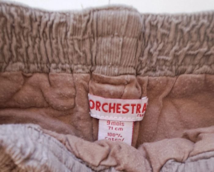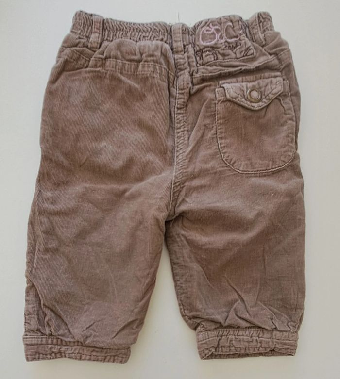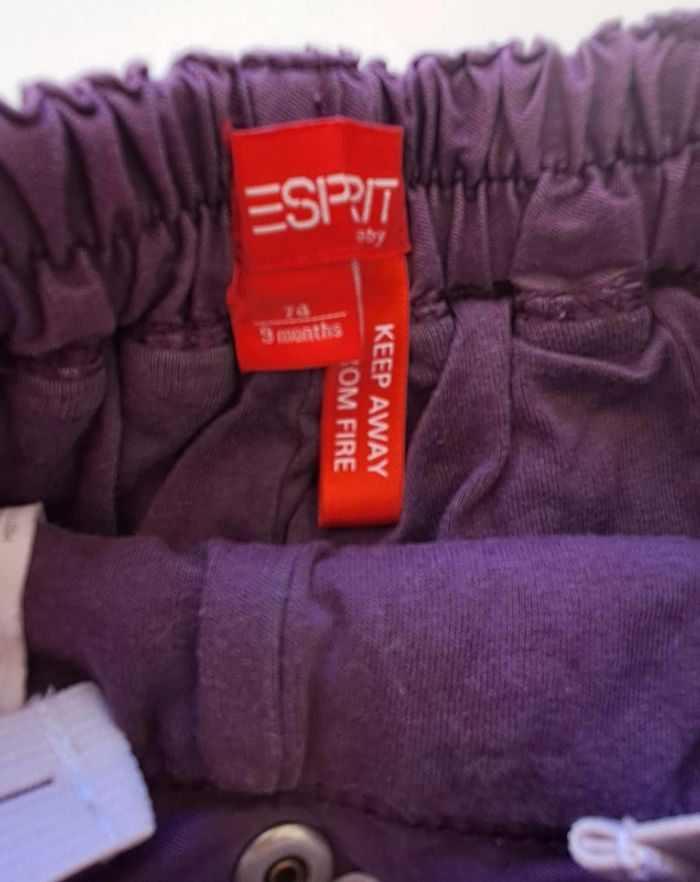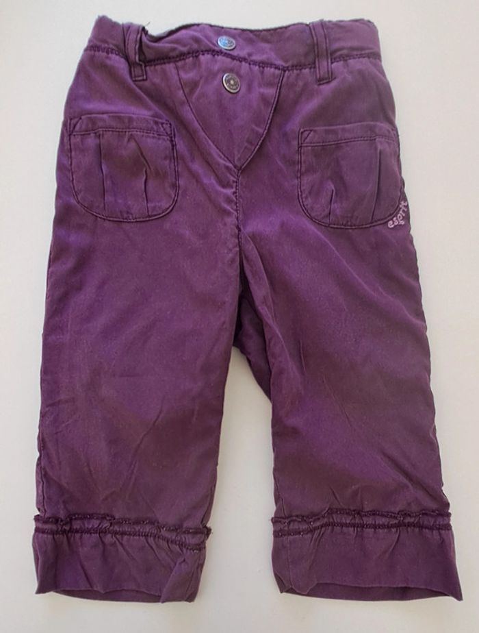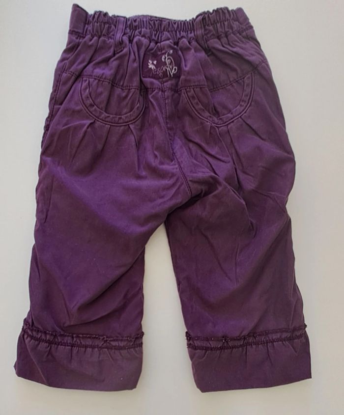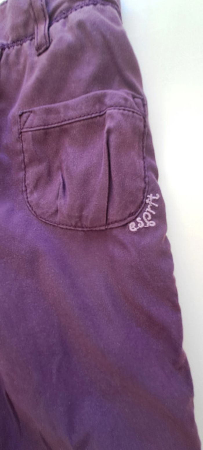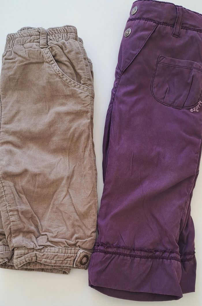 Lot de 2 pantalons fille 9 mois : - 1 pantalon violet taille réglable Esprit - 1 pantalon doublé en velours Orchestra #fampacrlt_vêtements_fille_9mois