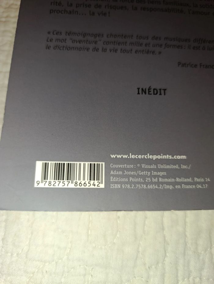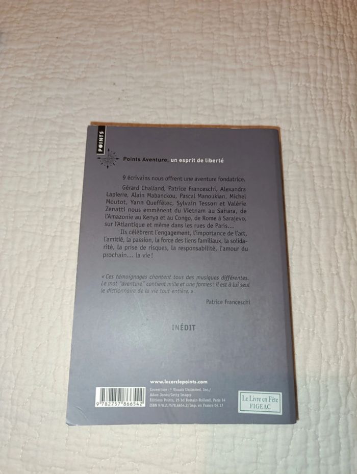 Livre l'aventure le choix d'une vie En très bon état Résumé 9 écrivains nous offrent une aventure fondatrice. Gérard Chaliand, Patrice Franceschi, Alexandra Lapierre, Alain Mabanckou, Pascal Manoukian, Michel Moutot, Yann Queffélec, Sylvain Tesson et Valérie Zenatti nous emmènent du Vietnam au Sahara, de l’Amazonie au Kenya et au Congo, de Rome à Sarajevo, sur l’Atlantique et même dans les rues de Paris… Ils célèbrent l’engagement, la passion, l’importance de l’art, l’amitié, la force des liens familiaux, la solidarité, la prise de risques, la responsabilité, l’amour du prochain… la vie ! « Ces témoignages chantent tous des musiques différentes. Le mot “aventure” contient mille et une formes : il est à lui seul le dictionnaire de la vie tout entière. » Patrice Franceschi