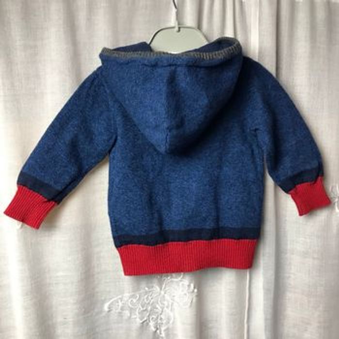 Beau gilet à capuche bleu chiné bleu marine, bord côte rouge et gris Entièrement doublé même les manches Taille 6 mois 68 cm H&M