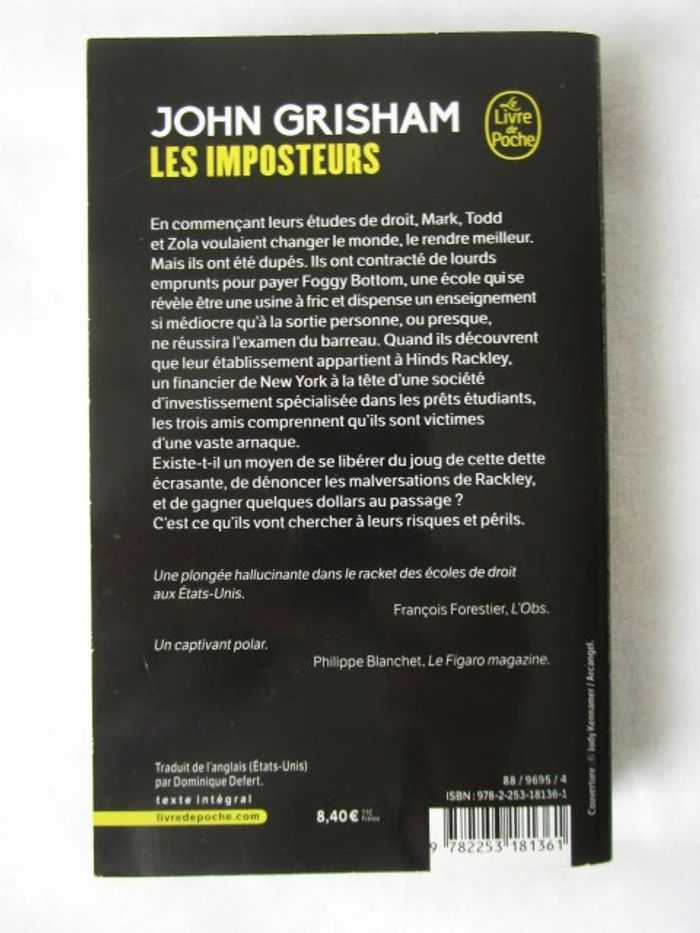 Les imposteurs de John Grisham Editions Le livre de poche Thriller En bon état, tranche jaunie #mamanbrade59livres #mamanbrade591euro