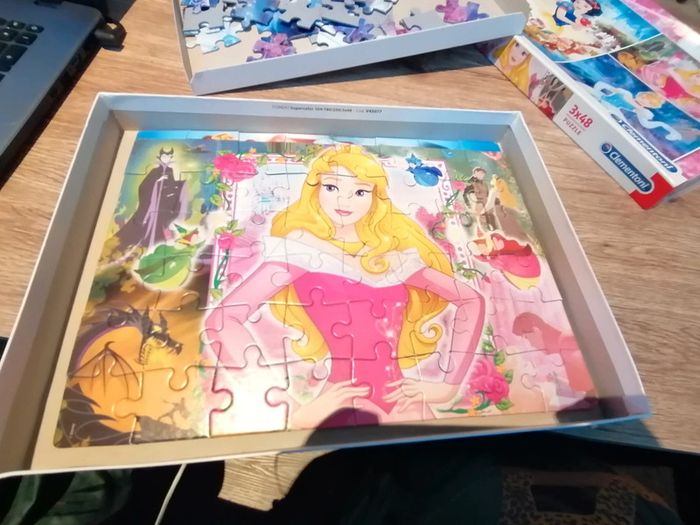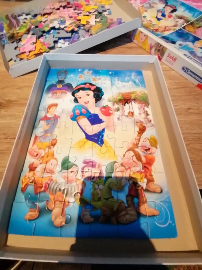 Bonjour, je vends ces 3 puzzles de 48 pièces des princesses Disney en très bon état.