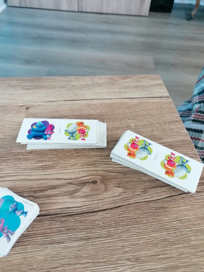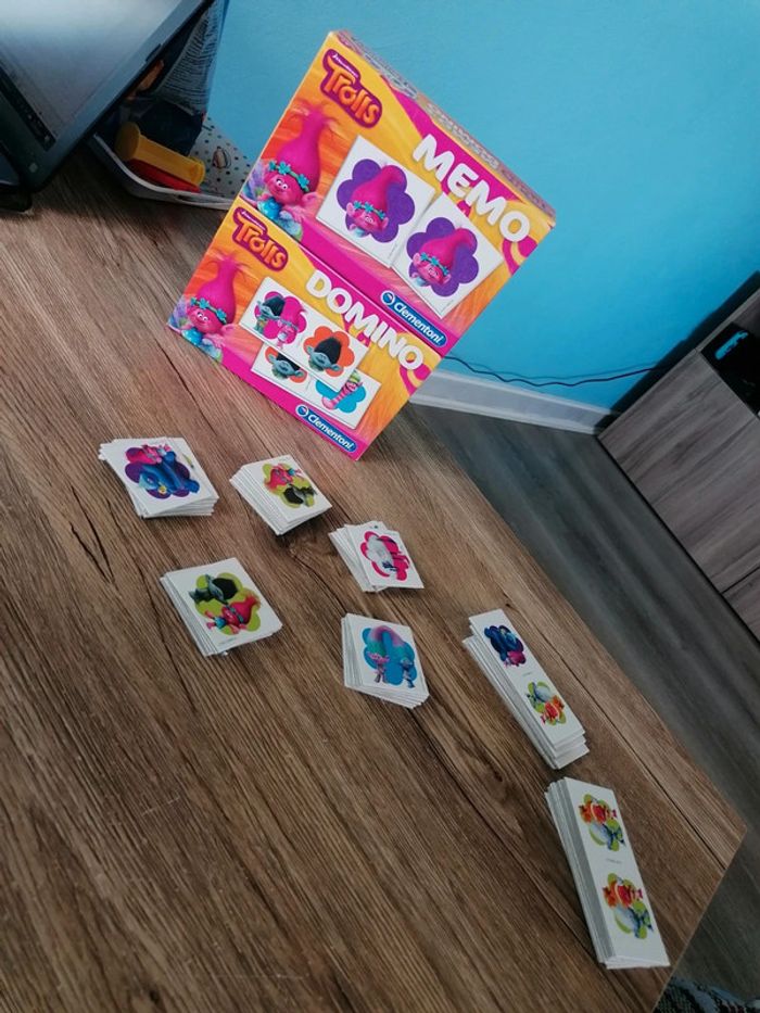 Bonjour, je vends ce jeu de memo et de domino thème les trolls complet en très bon état.