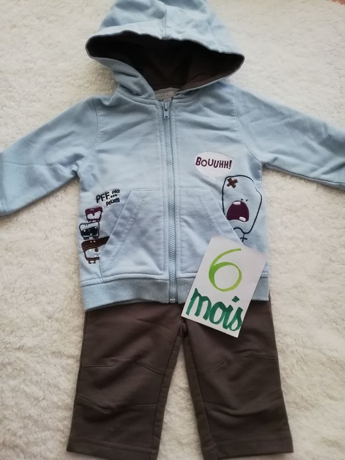 Ensemble gilet à capuche bleu et pantalon marron 6 mois kimbaloo - photo numéro 1