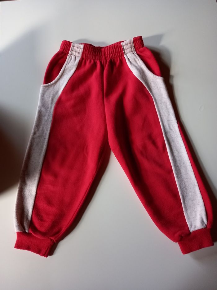 Ensemble sweat jogging un peu pelucheux, 2 poches et a un petit point de couture à l'arrière du jogging en dessous de la fesse qui ne ce voit quasiment pas. (Voir photos) Taille 3-4ans.