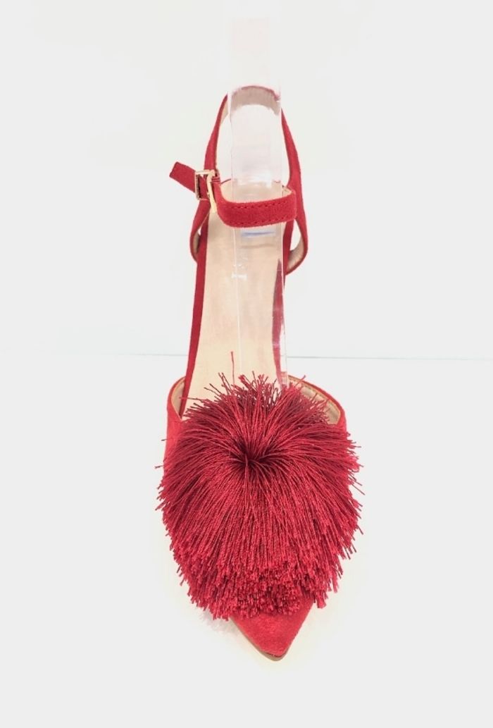 Escarpins rouge fermée pointue avec pompon taille 38 - photo numéro 1