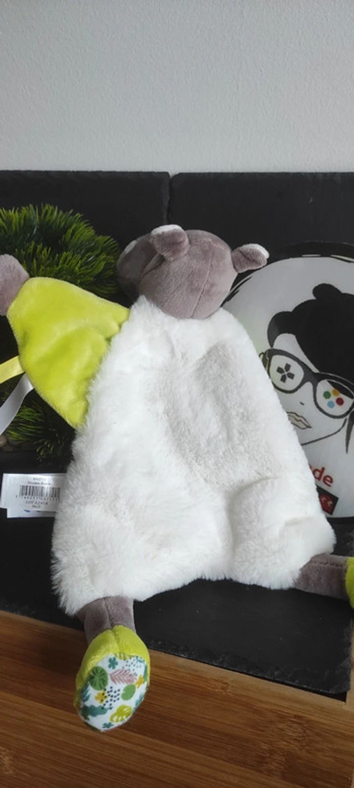 doudou hippopotame baby nat bn0711 bazile blanc vert feuilles gris Fourrure - photo numéro 2