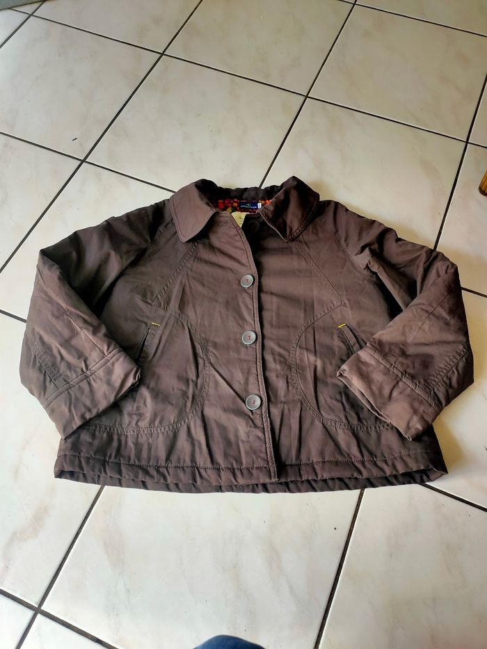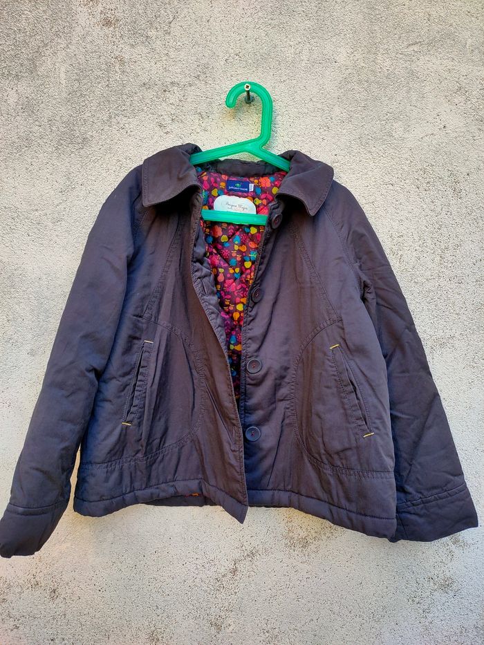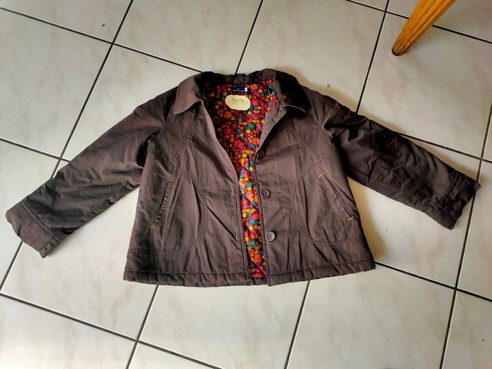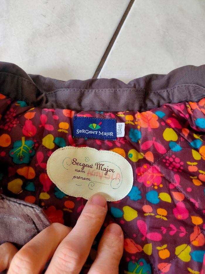 Manteau chaud coloris marron, intérieur matelassé a motif coloré et multicolore. Coupe évasée. Manches longues, sans capuche. Fermeture boutons. Marque Sergent Major, taille 10 ans. Il est en très bon état. Prix ferme, PAS DE NÉGO !!!