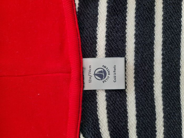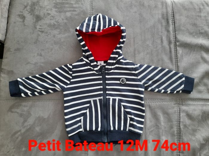 Bonjour Je vends ce gilet / cette veste / sweat zippé de marque Petit Bateau 12M 74cm. Jamais porté, neuf sans étiquette. C'est un cadeau offert pour mon fils mais je n'aime pas.