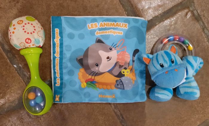 1 livre en tissus et 2 hochets ⛱️cliquez sur le lien ci-dessous pour voir mes autres jouets⛱️ #paupau1011jouet