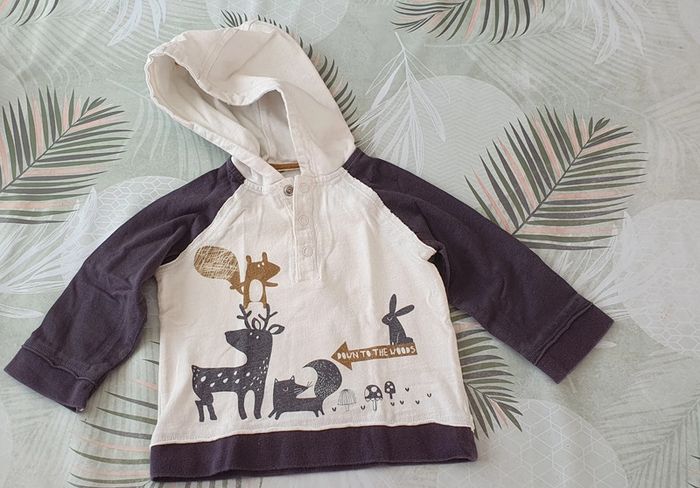 Lot qui comprend 7 pièces. Parfait pour votre loulou cet hiver ! Le tout est vraiment en très bon état 👌 (sauf indication contraire) : - 1 pantalon en coton Bout'chou, - 2 t-shirts ML Obaibi, - 1 t-shirt MC Petit Pirate, - 1 t-shirt à capuche Vertbaudet (une tâche à l'intérieur de la capuche, qui ne se voit pas à l'extérieur), - 1 gilet Orchestra chaud, avec capuche sherpa. Je crois me souvenir qu'il taille un peu grand, il pourra durer dans le temps! - 1 pull Orchestra. Je peux faire des photos supplémentaires sur demande 🙂.