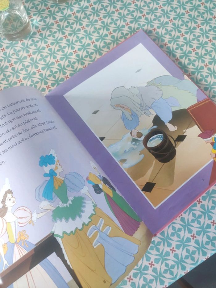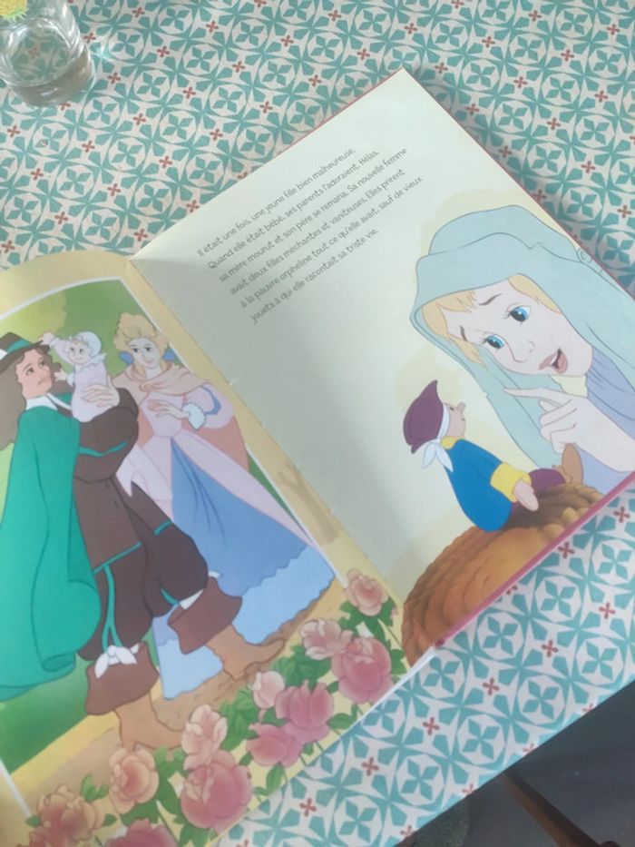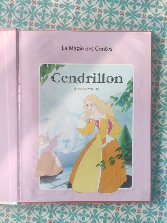 Grand livre avec une couverture matelassée, idéal pour l'histoire du soir avec la fabuleuse histoire de Cendrillon. Les pages sont un tout petit peu chiffonnées mais il n'y a aucune déchirure aucune trace d'écriture ! #vulariLivresEnfants