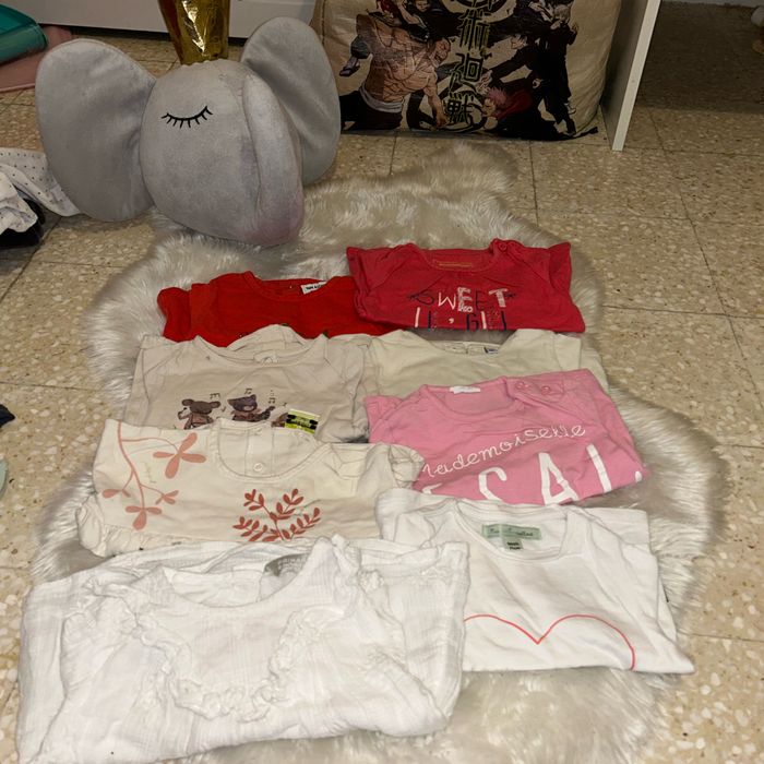 Lot de huit T-shirts manches longues, très bon état taille neuf mois