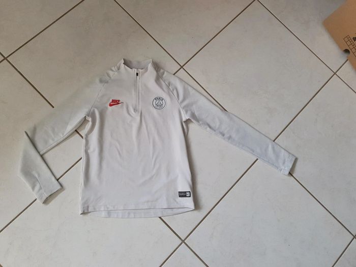 Sweat veste de sport garçon Paris Saint Germain Nike Beaucoup portée mais peut encore faire le bonheur d'un petit garçon Possède quelques tâches sur le devant et au dos cf photos et bout des manches usés cf photo N'hésitez pas à aller voir mes autres ventes classées par #eloio #eloiogarcon10ans #eloiogarcon12ans #eloiofoot #eloionike #eloiopsg