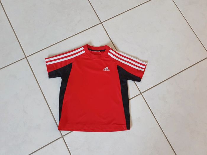 Tee shirt manches courtes garçon Le rouge est plus jolie que sur la photo Tâché sur le bas de devant et derrière cf photos N'hésitez pas à aller voir mes autres ventes classées par #eloio #eloiogarcon4ans #eloiogarcon5ans #eloioadidas