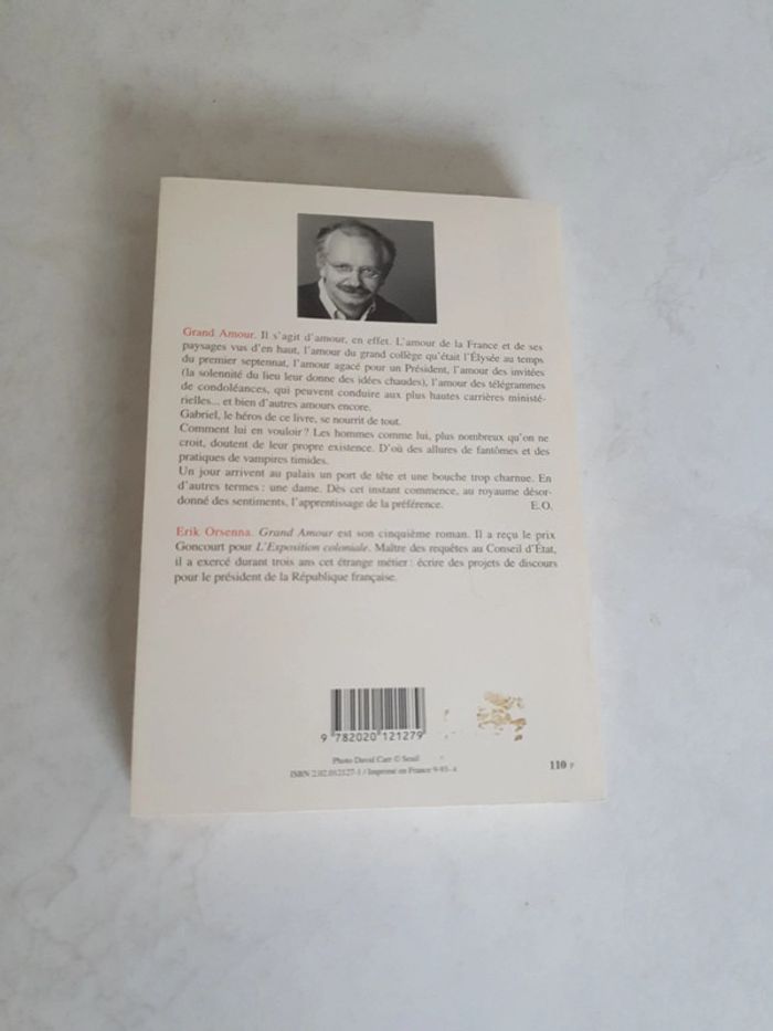Roman de Erik Orsenna Grand Amour Éditions du seuil Corné sur la reliure et la couverture de derrière cf photo N'hésitez pas à aller voir mes autres ventes classées par #eloio #eloiolivre