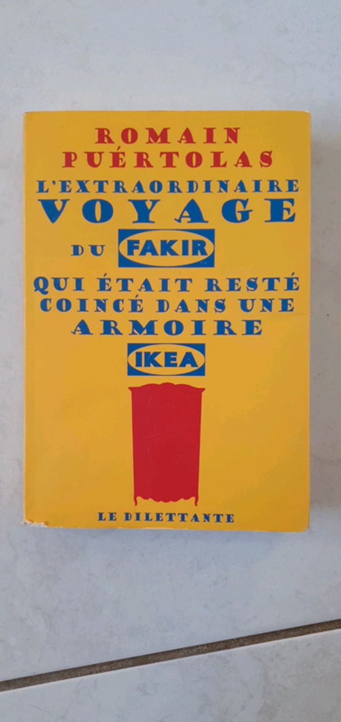 Livre de Romain Puértolas L'extraordinaire Voyage du Fakir qui était resté coincé dans une armoire Ikéa Le dilettante Un voyage low-cost ... dans une armoire Ikea ! Une aventure humaine incroyable aux quatre coins de l'Europe et dans la Libye post-Kadhafiste. Une histoire d'amour plus pétillante que le Coca-Cola, un éclat de rire à chaque page mais aussi le reflet d'une terrible réalité, le combat que mènent chaque jour les clandestins, ultimes aventuriers de notre siècle, sur le chemin des pays libres. Peu abîmé sur le bas cf dernière photo N'hésitez pas à aller voir mes autres ventes classées par #eloio 😉 #eloiolivre