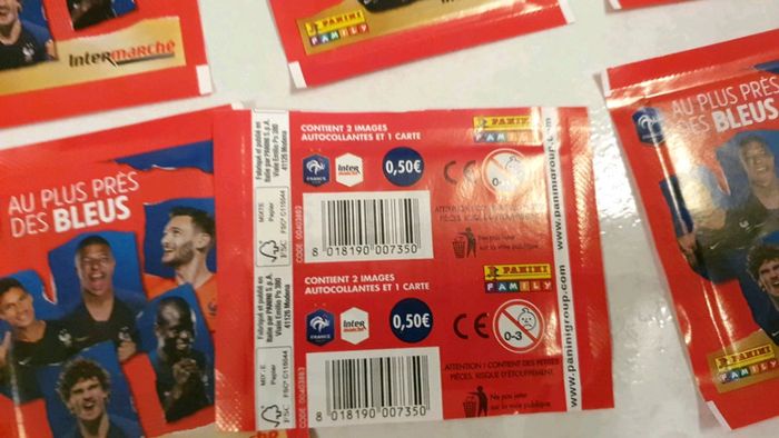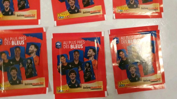 Lot de paquets panini intermarché Au plus près des Bleus Chaque paquet contient 2 images autocollantes et 1 cartes à collectionner Neuf jamais ouvert #eloioneuf #eloiocartes #eloiofoot #eloiocollection
