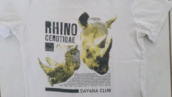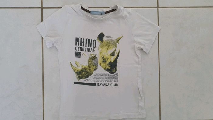 Tee shirt manches courtes garçon blanc Motif rhinocéros Légère tâche dans le dos cf photo N'hésitez pas à aller voir mes autres ventes classées par #eloio #eloiogarcon6ans