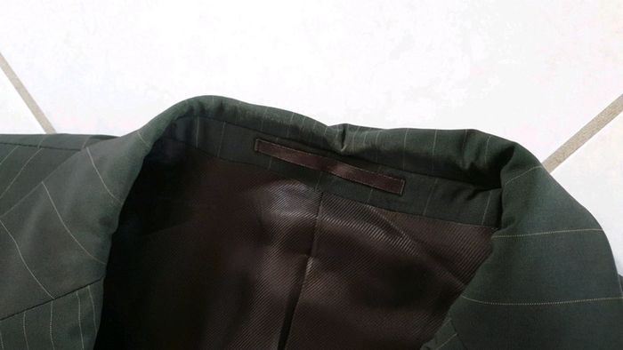 Veste de costume homme rayé Couleur vert kaki Le col est un peu abîmé cf photo N'hésitez pas à aller voir mes autres ventes classées par #eloio #eloiohomme