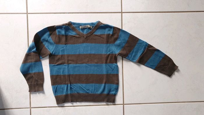 Pull garçon rayée col V tao 4/5 ans CH2 - photo numéro 1