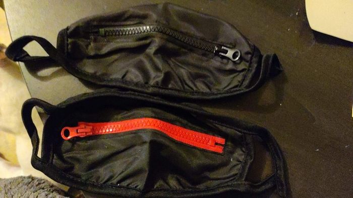 2 Masque en tissu avec fermeture éclair ( qui s'ouvre ) . Neuf