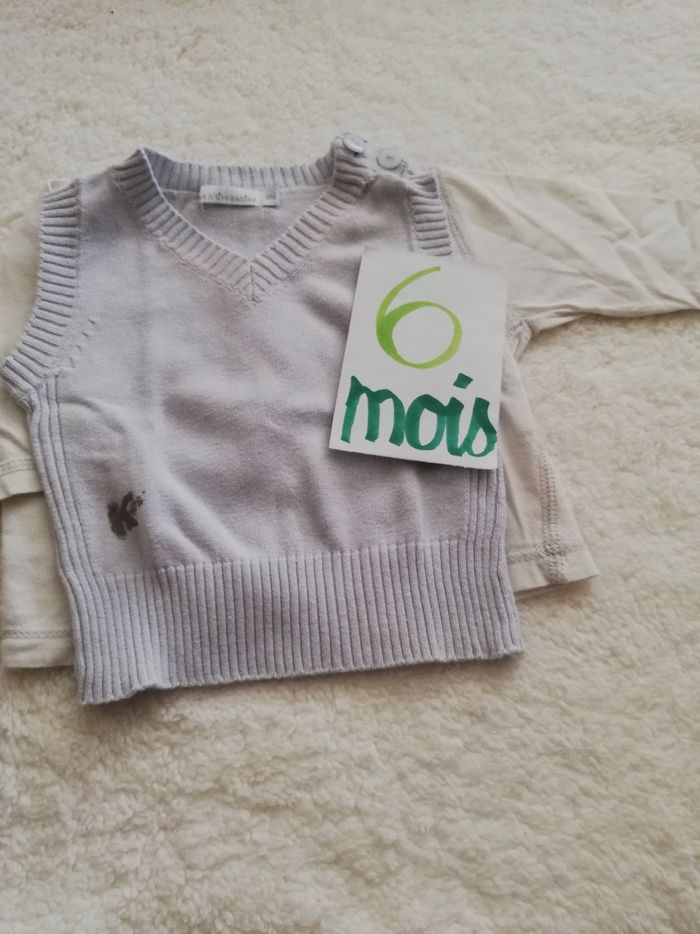Tee shirt manche longue blanc et gilet manche courte bleu garçon 6 mois les ptits babies - photo numéro 1