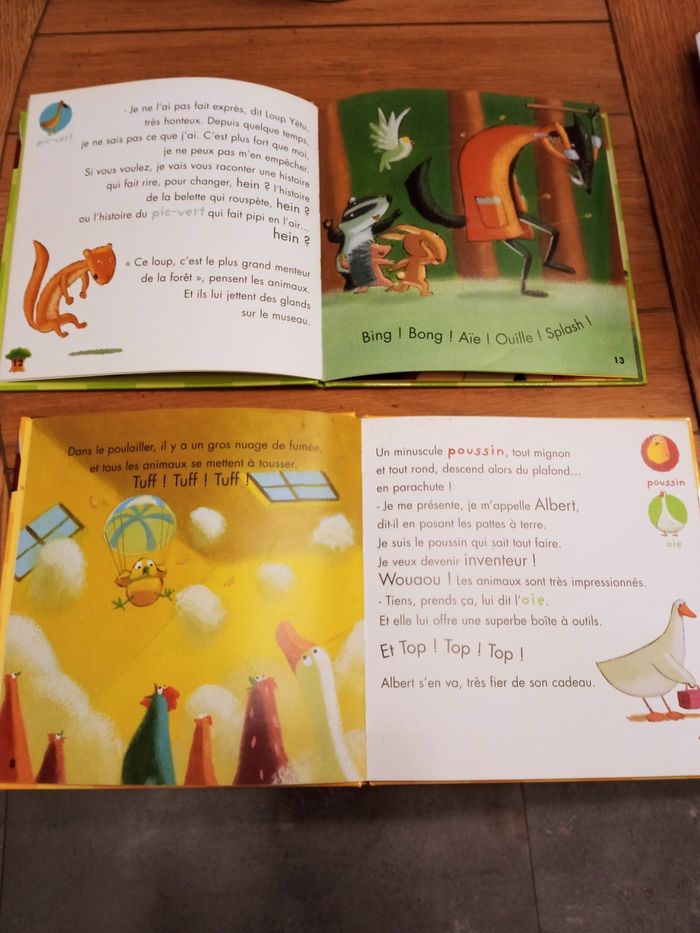Avec CD, lu par Marlène Jobert. Albert, le poussin qui fait tout de travers Le loup qui mangeait les histoires Avec des jeux à la fin.