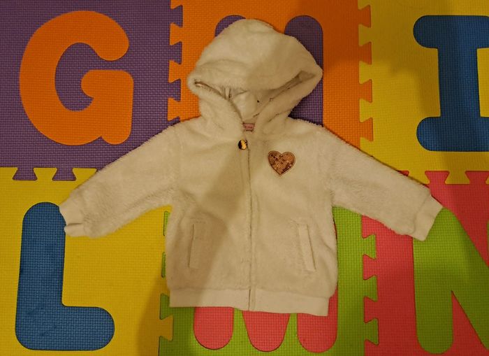 Gilet capuche blanc cœur, gémo, taille 6 mois (67 cm) - photo numéro 1