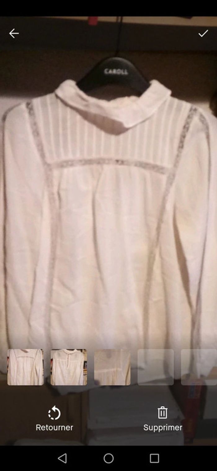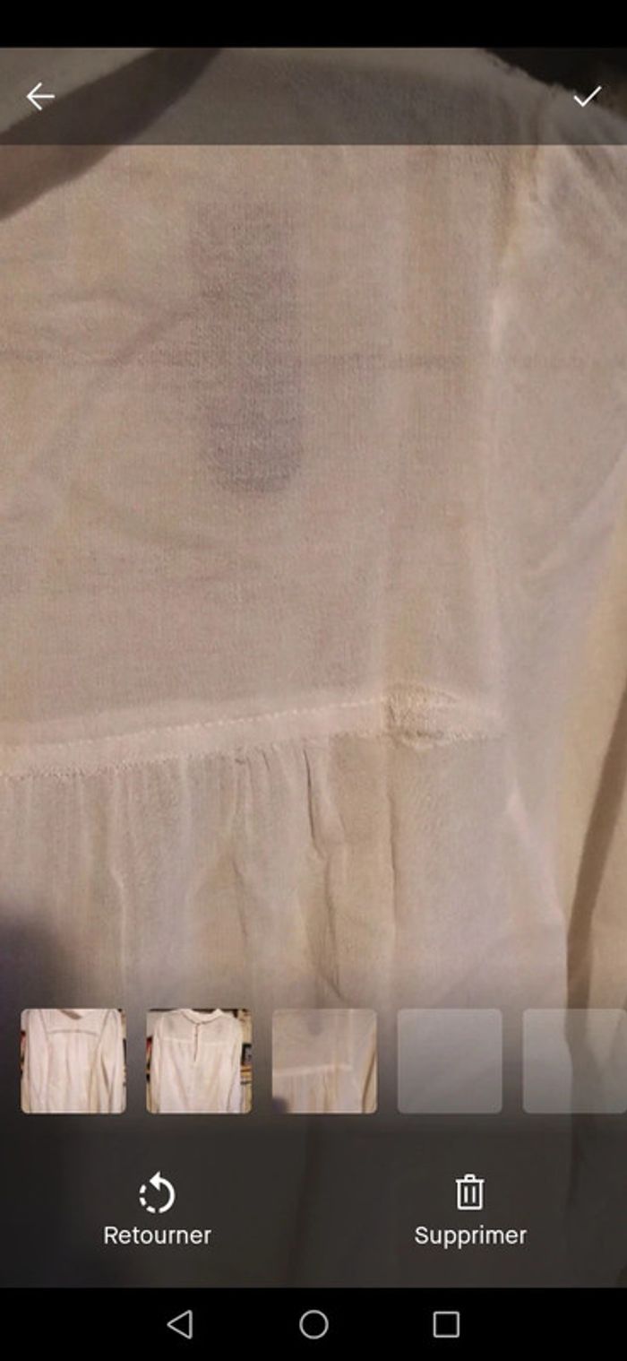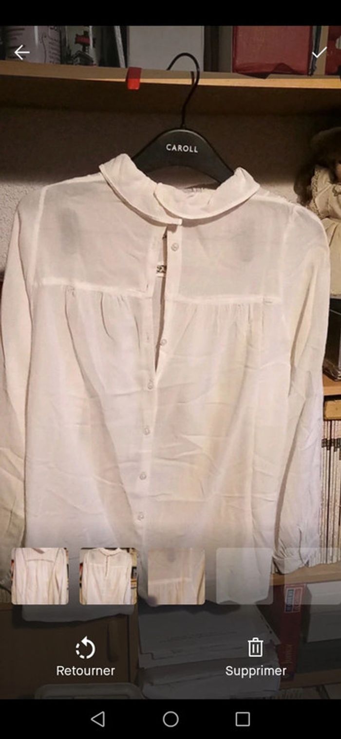 Se boutonne dans le dos, manches longues, viscose et coton petit col , un petit effilauchage haut droit dans le dos niveau couture