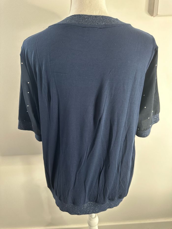 Blouse bleue marine et blanche pailletée à pois Un jour ailleurs UJA T3 40 L - photo numéro 4